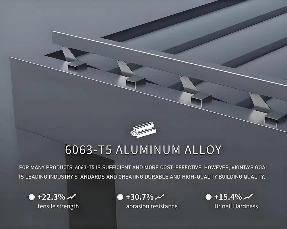 অ্যালুমিনিয়াম এর শক্তি, রক্ষণাবেক্ষণের সহজতা, মরিচা প্রতিরোধ এবং জারা প্রতিরোধের জন্য অত্যন্ত বিবেচিত হয়, এটি বহিরঙ্গন নির্মাণের জন্য একটি আদর্শ পছন্দ করে তোলে। এর দীর্ঘ জীবনকাল এবং কম রক্ষণাবেক্ষণের প্রয়োজনীয়তার কারণে, এটি ঘন ঘন মেরামত বা প্রতিস্থাপনের প্রয়োজনীয়তা হ্রাস করে এবং যদিও প্রাথমিক খরচ বেশি হতে পারে, এর দীর্ঘমেয়াদী মান এখনও বিশিষ্ট।