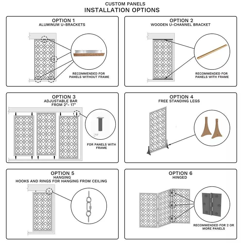 বৈচিত্রপূর্ণ ভিত্তি: অ্যালুমিনিয়াম খাদ কলাম, ইস্পাত কাঠামো ফ্রেম, কংক্রিট দেয়াল, এবং বিদ্যমান কাঠের বেড়া সিস্টেমের সাথে পুরোপুরি সামঞ্জস্যপূর্ণ।